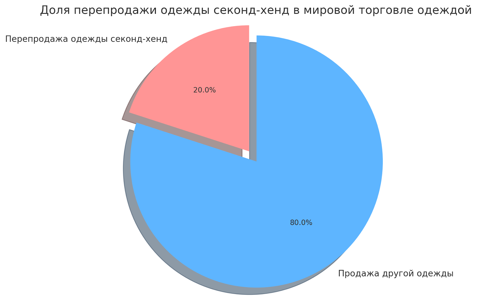 Вот диаграмма о том, что доля перепродажи одежды секонд-хенд в мировой торговле достигла 20 процентов.